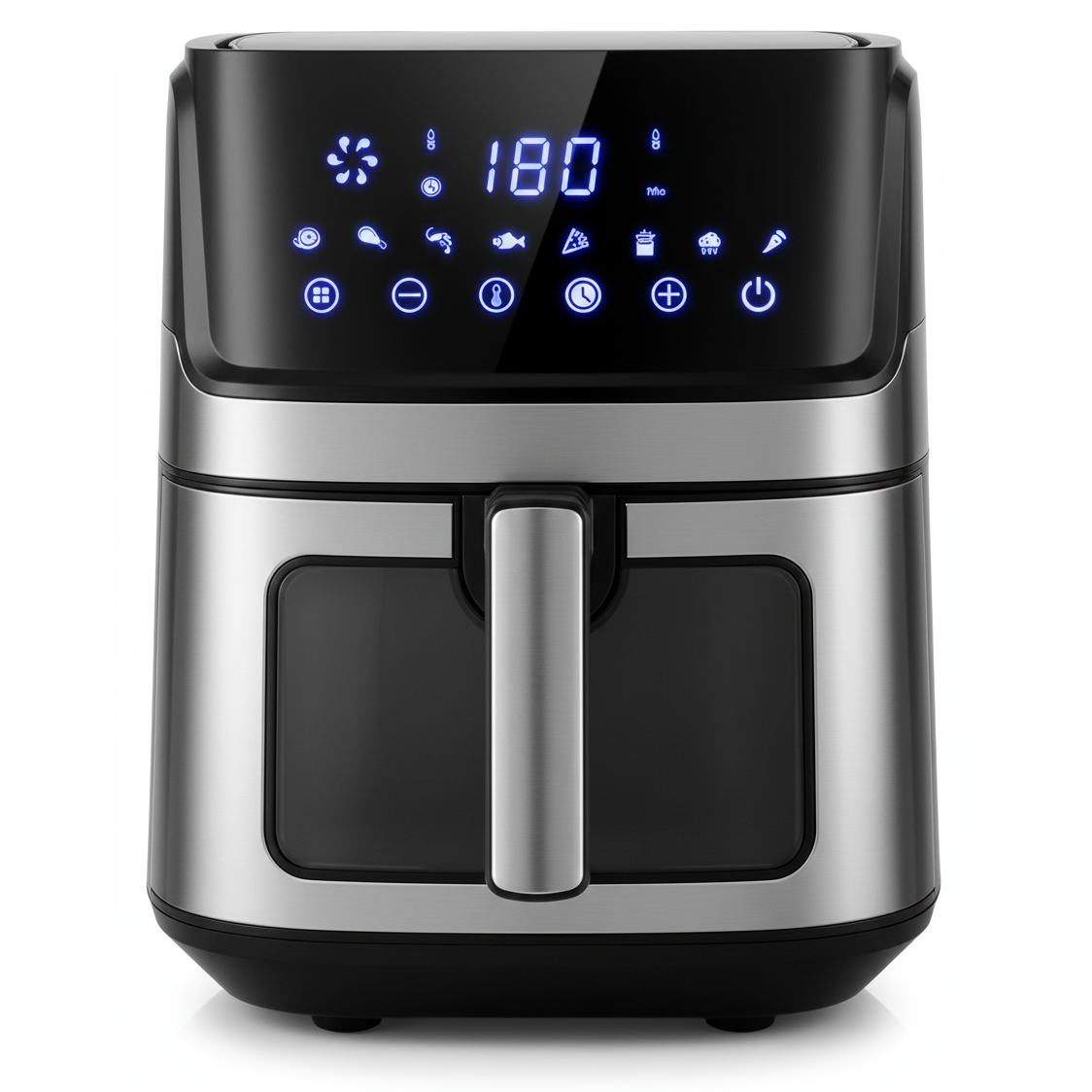 الإير فراير مزود بشاشة ديجيتال بتسهّل التحكم في الوقت ودرجة الحرارة، وبيعتمد على تقنية الهواء السخن اللي بتوزع الحرارة بشكل متساوي، فالأكل يستوي كويس من كل ناحية من غير ما يتحرق أو ينشف.