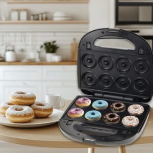 صانعة الدونت تأتي بـ 6 قوالب لصنع ست دونتس في نفس الوقت، مما يجعلها مثالية للفطار، الحفلات، أو وجبة لذيذة للأطفال. الطبقة الداخلية غير لاصقة تمنع الالتصاق نهائيًا، وتسهّل عليك إخراج الدونت وتنظيف الجهاز بدون مجهود.