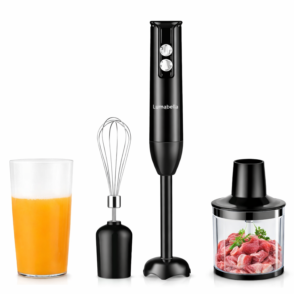 خلاط اليد Lumabella 500W هو جهاز عملي متعدد الوظائف، مصمم ليسهل عليك كل مهام المطبخ اليومية. بقدرة 500 وات قوية، تقدر تعمل عصائر، شوربة، صوصات، كريمة، وتحضير مكونات مختلفة في دقائق.
