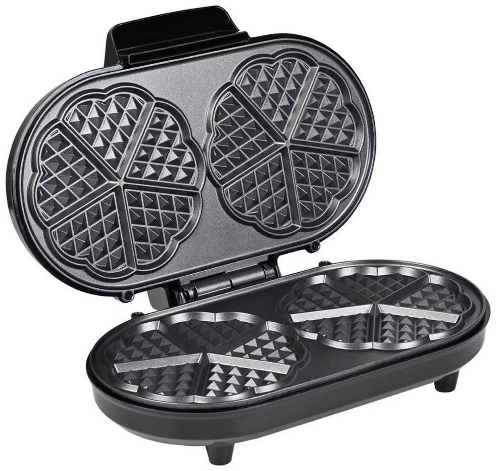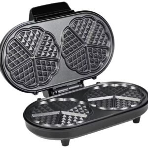 تأتي الصانعة بتصميم مزدوج يسمح لك بتحضير قطعتين وافل في نفس الوقت، بشكل القلوب المميّز، علشان تستمتع بفطار لذيذ وجميل المظهر. الطبقة الداخلية غير لاصقة تسهّل عليك الاستخدام والتنظيف بدون أي مجهود.